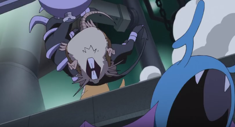 - Demolosse est le seul Pokémon de cette même scène à ne pas apparaître dans le jeu vidéo, où même les Admins du repaire n’en possèdent pas.