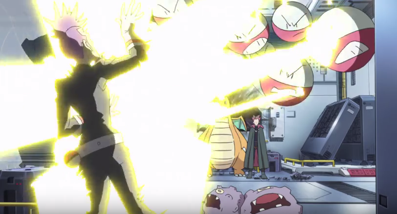 Dracolosse détruit les installations entre eux et les Electrode, puis ces derniers sont libérés de leurs capteurs. Avant de partir, ils prennent soin d’électrocuter tous ensemble l’Admin Rocket.