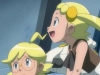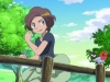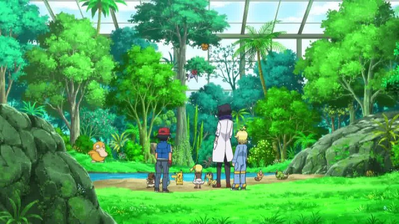 Serena ouvre à nouveau l’épisode. Cette fois, elle tente de maîtriser le Rhinocorne sur lequel elle est montée. Mais cela se révèle plus compliqué que prévu, et celui-ci l’envoie à terre ! Sa mère continue malgré tout de l’encourager et croit en elle. Mais Séréna s’exclame qu’elle n’aime pas du tout cette pratique… Il est temps maintenant de retrouver Sacha, en compagnie de Clem, Lem et Pikachu qui courent dans les rues d’Illumis pour apporter le plus vite possible le Grenousse très blessé au Professeur Platane. La Team Rocket, toujours dans les parages, les surveille du haut d’un arbre…