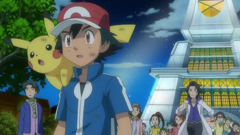 Carchacrok est enfin libéré et peut retrouver ses esprits! Mais à ce moment, un morceau de la Tour, fragilisé par les attaques de Carachacrok, s’écroule et emmène Pikachu dans sa chute. Sacha ne réfléchit alors pas, et se jette dans le vide pour aller chercher son précieux ami. Ils sont en chute libre, mais heureusement quelque chose les rattrape avant qu’ils ne tombent au sol. Une fois déposés en sécurité, ce mystérieux héros s’envole tout de suite vers un autre bâtiment. Le Professeur Platane, qui a rejoint Sacha, lui explique qu’il vient d’être sauvé par un Méga-Braségali, celui que Sacha a rencontré le matin même à l’aéroport ! Tout le monde est sain et sauf et peut rentrer dans le laboratoire. En voyant un gros plan sur Sacha, Séréna se souvient alors de quelque chose. Ce jeune garçon lui semble être familier…