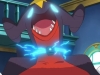 Il monte et s’avance vers Carchacrok. Mais celui-ci ne veut pas se laisser approcher… Il s’envole alors à l’étage supérieur de la Tour et atterrit au sommet de celle-ci. Sacha ne se dégonfle pas, et il monte grâce à une petite échelle tout là haut… Serena suit les évènements de très près, inquiète pour Sacha. Arrivés une fois en haut, Carchacrok continue de les attaquer, tout en reculant. Mais il se rapproche dangereusement du bord… Pour éviter qu’il ne tombe, Grenousse envoie sa mousse collante sur les pieds du Pokémon. Il n’y a ainsi plus aucun risque de chute ! Sacha en profite pour sauter sur Carcacrok et l’immobiliser. Il demande alors à Pikachu d’envoyer une attaque Queue de Fer, qui brise enfin l’anneau!