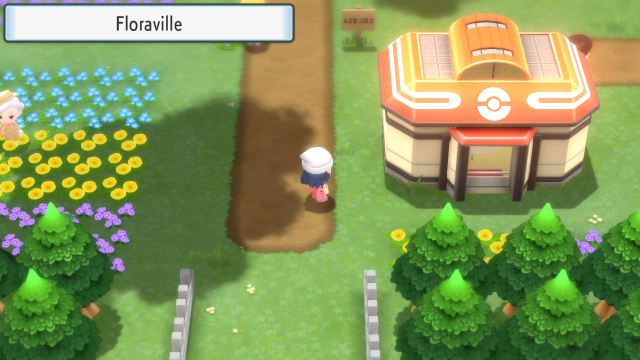 Vous voici désormais à Floraville. Partez vers l’ouest pour aller discuter à un couple de personnes âgées ! Si vous possédez une sauvegarde de Pokémon Epée/Bouclier et/ou une sauvegarde de Pokémon Let’s Go Pikachu/Evoli, vous pourrez obtenir les Pokémon Fabuleux : Mew et Jirachi !