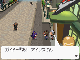 Devant l’Arène, vous rencontrerez Iris et l’arène est apparemment fermée. Repartez au sud vers le Centre Pokémon, Iris vous attend non loin, continuez à la suivre. Elle vous montre un souterrain sous un quai, dans lequel votre Rival rentre en débarquant en trombe. Faites pareil !