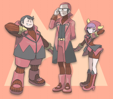 Le premier sbire aura une équipe composée d’un Chamallot (Magma)/Carvanha (Aqua) de niveau 16 et le second sbire aura un Nosférapti au niveau 14 et un Chamallot (Magma)/Carvanha (Aqua) au niveau 14.