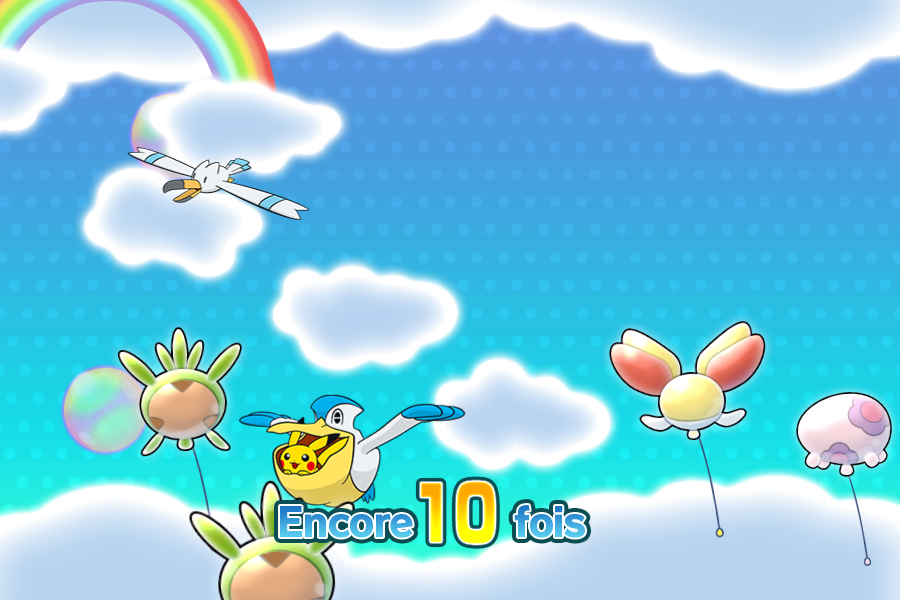 Pour accéder au mini-jeu Ballons flottants, c’est de même, dans le Club Poké Miles. Différents niveaux sont disponibles selon le nombre de médailles que vous avez gagné jusqu’ici, et à chaque niveau, les lots sont différents. Selon les 10 ballons crevés, vous obtiendrez un certain nombre de points qui permettront de gagner :