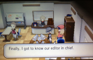 Une fois le mémo lu, la rédactrice semble avoir Volcanion et, plus important encore, vous le remet en vous expliquant que le Pokémon semble vous faire confiance. Nul besoin donc de combattre le Pokémon pour l’obtenir ? Les propos des captures d’écran ne semblent pas bien clair, et il n’est pas fait mention d’une obtention de Volcanion. Il est possible qu’elle ne fait que vous pousser ensuite à aller rencontrer le Pokémon.