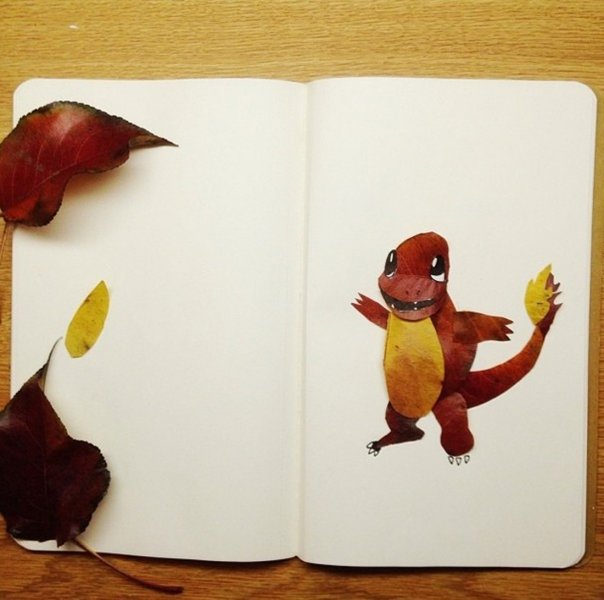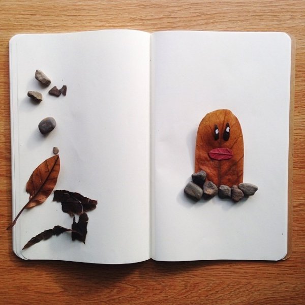 Ces images sont des créations de feuilles et cailloux et représentent Herbizarre, Noadkoko, Pikachu, Psykokwak, Salamèche et Taupiqueur. Elles font partie d’une série nommée « Natural Pokémon » postée sur le compte Instagram de son créateur et sont parfois très bien fichues.