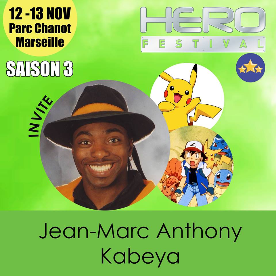 Le chanteur des premiers génériques français de l’anime Pokémon, Jean-Marc Anthony Kabeya, sera à Marseille les 12 et 13 novembre pour l’HeroFestival !