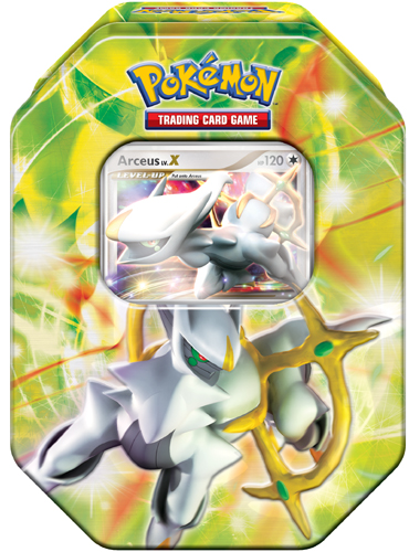 La prochaine série de cartes à jouer et à collectionner Pokémon, Platinum Arceus sera accompagné d’une Tin box. Il n’y en aura qu’une et sera aux couleurs, bien entendu du Pokémon Phare de l’extension, le légendaire Arceus. A l’intérieur vous retrouverez, bien entendu, des boosters de la série ainsi qu’une carte promotionnelle. Il s’agit, comme vous vous en doutiez encore, d’une carte à l’effigie d’Arceus. Cette carte sera celle d’un Arceus Niv.X avec une illustration inédite.
