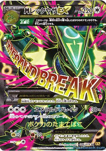 Emerald Break, la sixième extension du bloc XY sortira au Japon demain, le 14 mars. Elle sera adaptée en version internationale en compagnie du Méga-Rayquaza EX Mega Battle Deck dès mai avec une sortie en Amérique du Nord le 6 sous le nom Roaring Skies, et probablement vers la fin du mois en Europe.