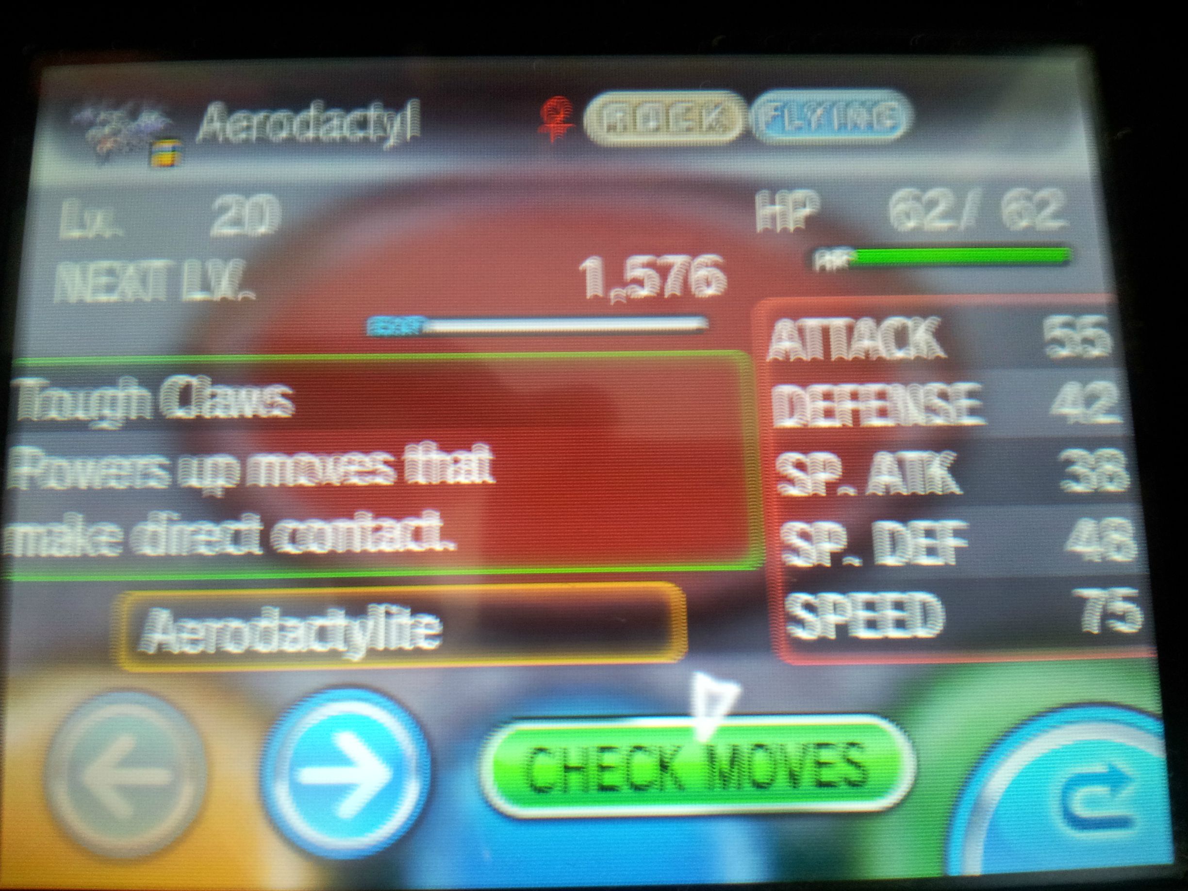 Méga-Ptéra peut se transformer grâce à la Méga-gemme Aerodactylite (nom anglais). Ptéra peut d’ailleurs obtenir le nouveau talent, Tough Claws, améliorant la puissance des capacités effectuant un contact avec l’adversaire. A priori, sa statistique de vitesse est bien améliorée ainsi que ses statistiques défensives.
