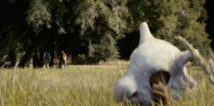Dans la fiction réelle, c’est le crâne de sa mère qu’il porte sur son visage, dans le film Tim et son ami disent que dans la nuit passée, c’était la pleine lune et qu’ils ont pu entendre Osselait, pleurant sans cesse dans la nuit. Le film n’y fait pas référence en tant que crâne d’un “parent”, mais le moment de la pleine lune confirme que la même origine est à l’œuvre.