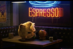 Lorsque Tim et Pikachu entrent dans le bureau d’Howard Clifford (joué par Bill Nighy), on l’entend d’abord parler puis une lumière aveuglante masque entièrement Clifford. Il s’agit d’une lumière d’évolution Pokémon… et un Pyroli apparaît !