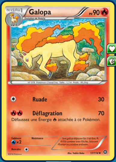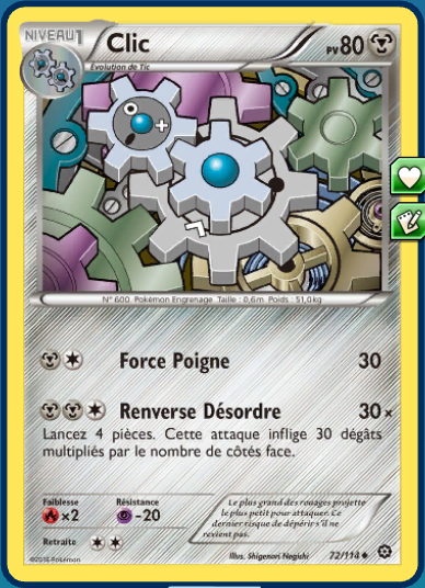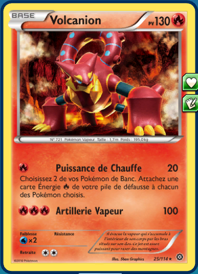 - Rouages de Feu contient des Pokémon de type Feu et Acier. Les cartes Volcanion holographique et Cliticlic sont exclusives à ce deck.